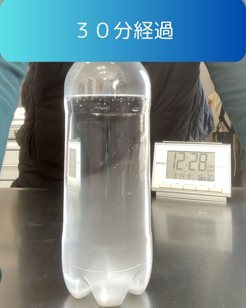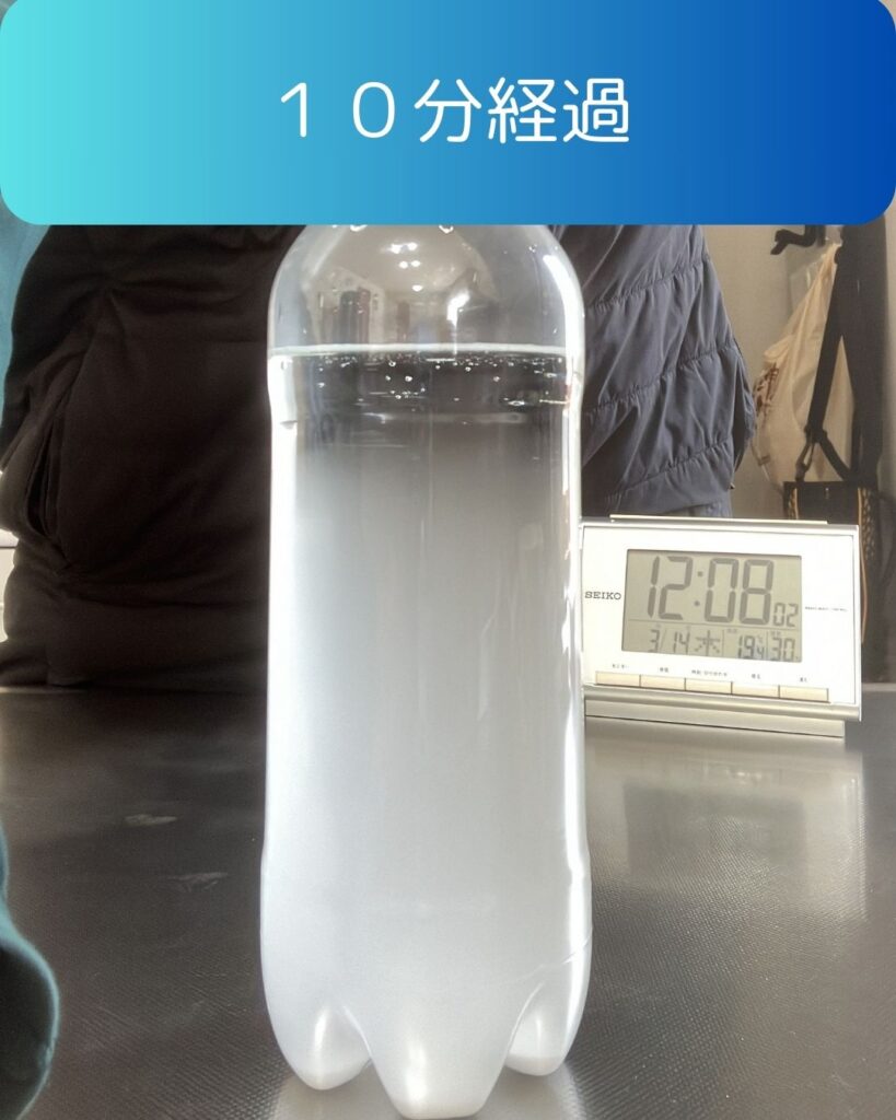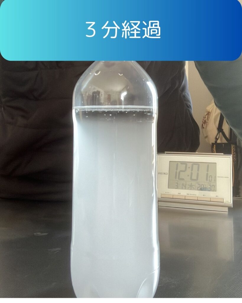 時間が経つと水がどんどん透明になってくる・・・ペットボトルの中身はなんだろう?