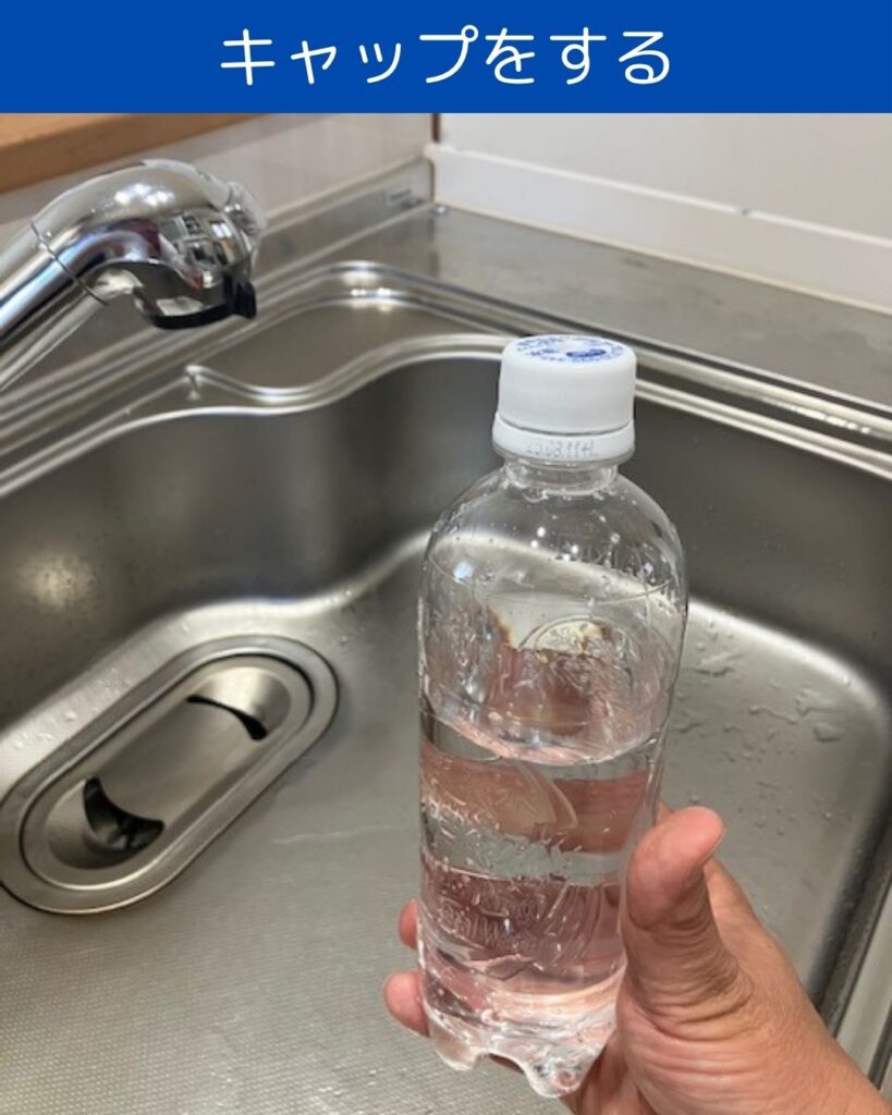 - 500mlのペットボトルに8割ほど水を入れる